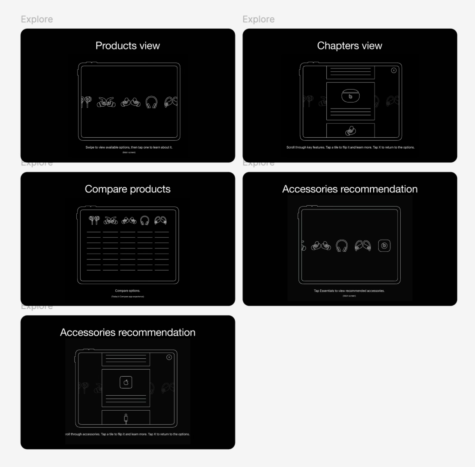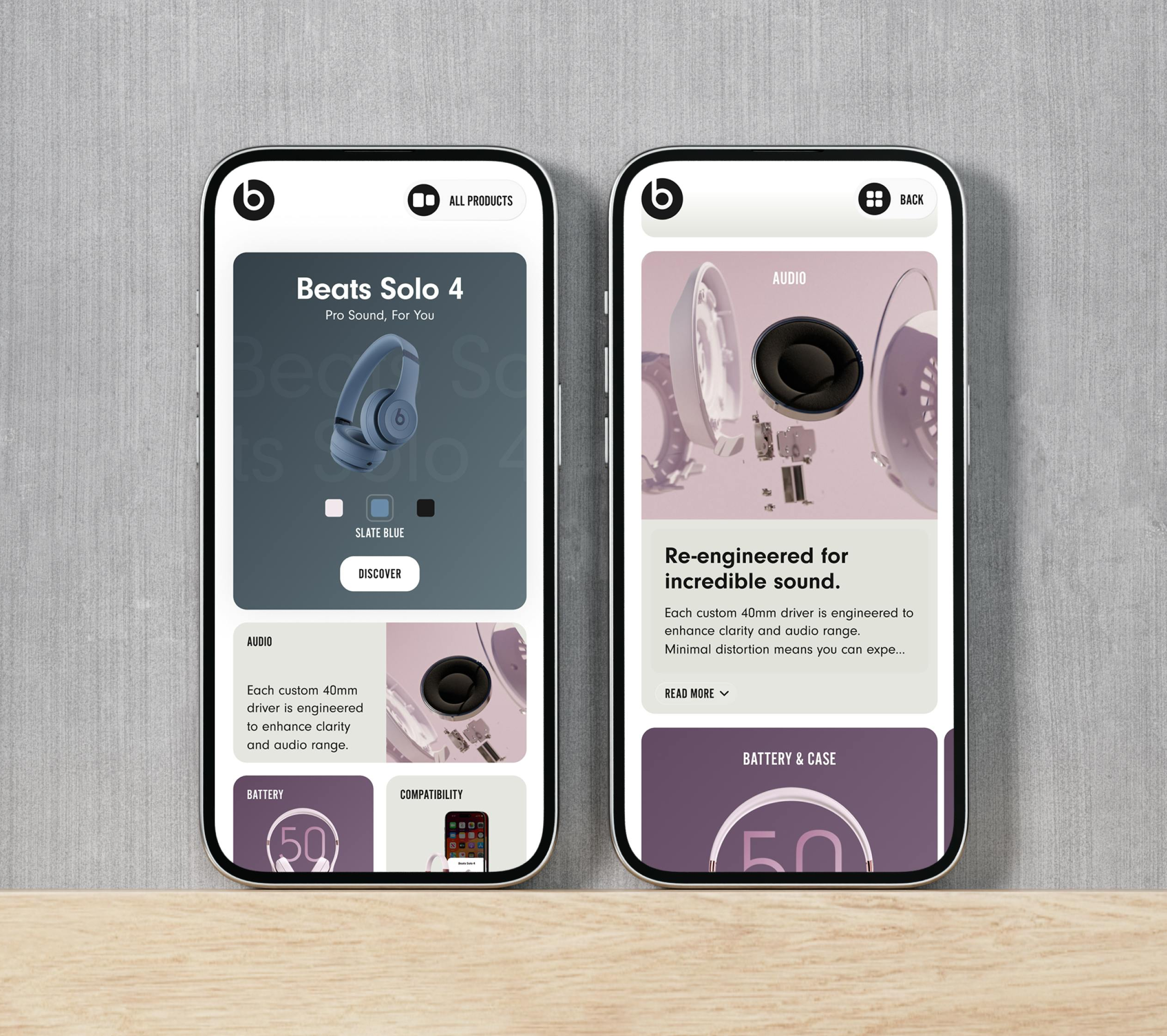 As long time collaborators, the team behind the ‘Beats By Dre’ in store and digital shopping experience were no strangers to challenging us with new ways to simplify & amplify the shopping experience for customers. With only 2-weeks for UX planning and exploration; and 4-weeks to complete all designs as the sole designer and lead-creative. All my previous experimentation across various other works came to light in order to create a simple, adaptable experience, loved by user and client alike.