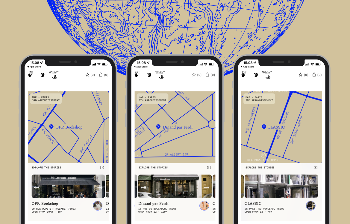 All explorative branding related visual directions were based on the phrase ‘the world of off-white’. The design direction is an attempt to communicate that our Paris city guide is an extension of off-white and a guide to entering the OFW world.