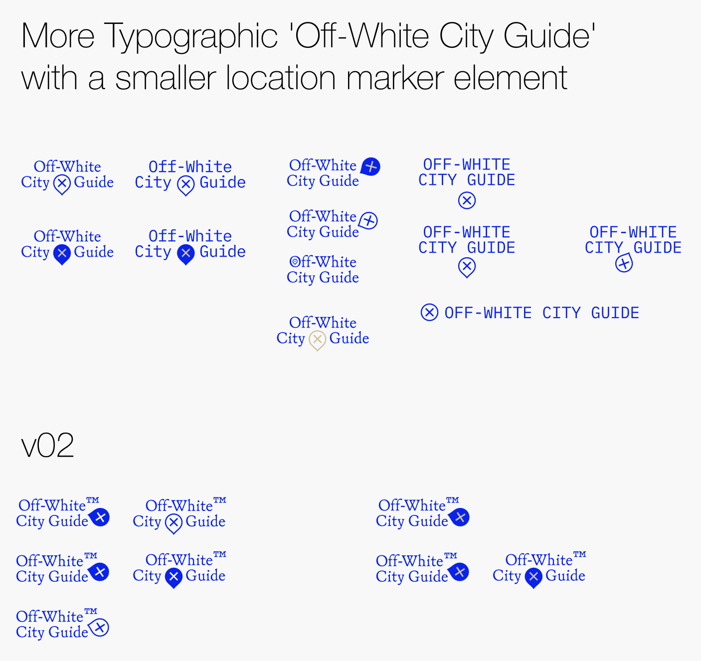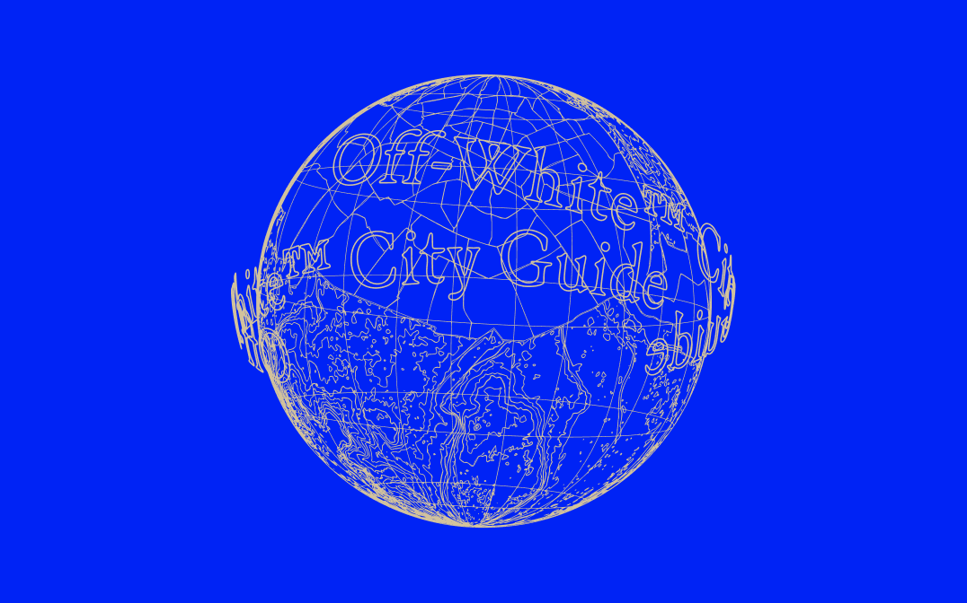 A location marker is an icon synonymous with ‘you are here’. Combining the planet earth and this recognisable icon not only alludes to the city guide; it is in line with the spaceship earth directive while again connection that space you are entering as part of the world of Off-White.
