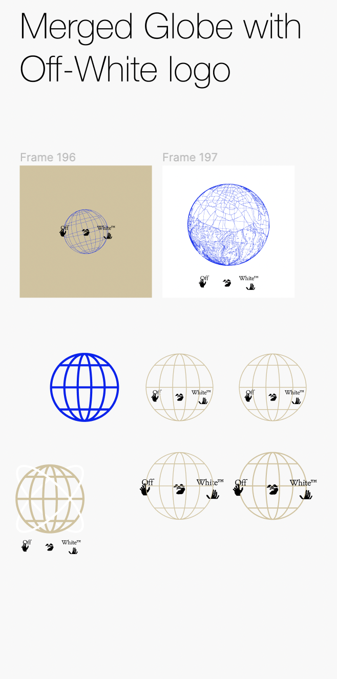 The combination of these visual approaches with the Off-White logo solidifies the suggestions noted previously, while adding the OFW stamp of highly curated authenticity. Visually placing the OFW logo within the globe allows for the illusion of the hands holding the world, again a representation of ‘the world in off-white’. With the logo placed below, we have the visual representation of a globe stand with OFW external, it creates a sort of omnipotent presence for the OFW brand.